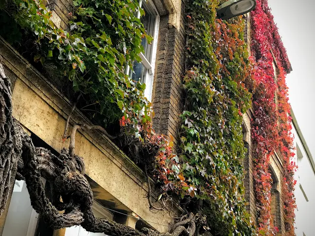 W Oxfordzie wiele domów porośniętych jest wspaniałymi winoroślami - wiosną i latem zielone i gęste, jesienią czerwienią się wśród cegły i kamieni
